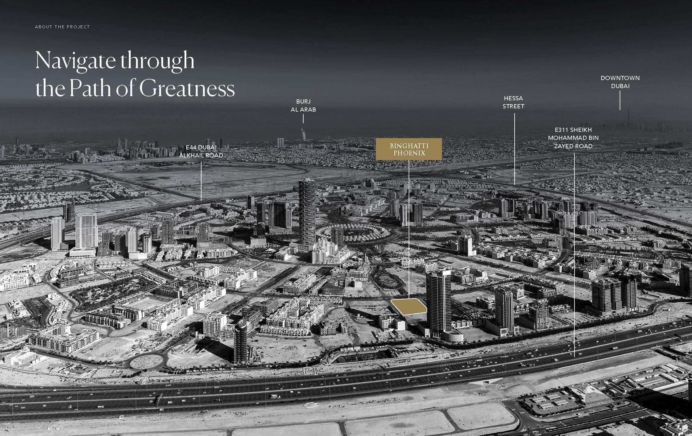 A poetic expression of resurgence, Binghatti Phoenix rises as a beacon of architectural ingenuity. The exterior façade is characterized by fluid lines that symbolize the flow of human existence. The interior spaces are thoughtfully curated to reflect this theme, featuring regal finishes and palettes.
